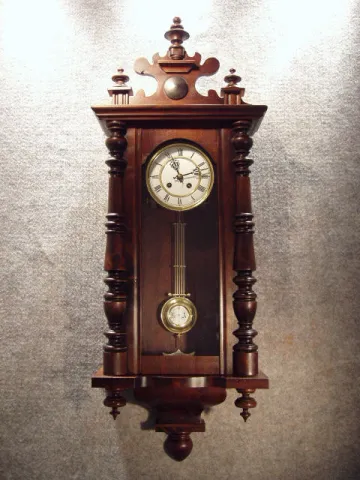 German R-A Style Wall Clock In A Dark Walnut Finished Case. Circa 1910.