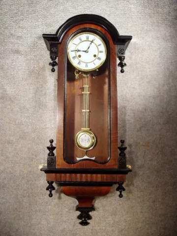 German Arched Top Black And Tan Cased R-A Style Wall Clock By Junghans. Circa 1890'S.