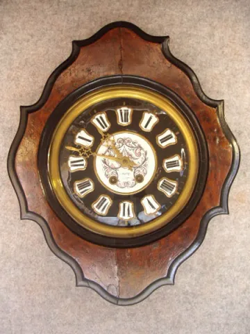 The Front Door Has A Sculptered Wood Black Egde And Burl Wood Overlays. The Dial Is Black With Roman Cartuches, The Center Is Enameled With A Pink And...