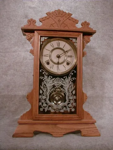 The Glass Has A Silver Pattern. The Paper Dial Has Roman Numerals With Nickle Trim, The Pendulum Is Also Nickle. The 8 Day Movement Strikes The Hours ...