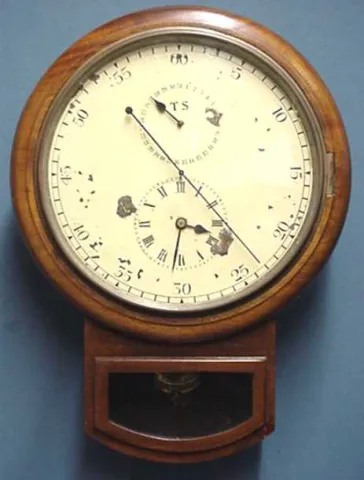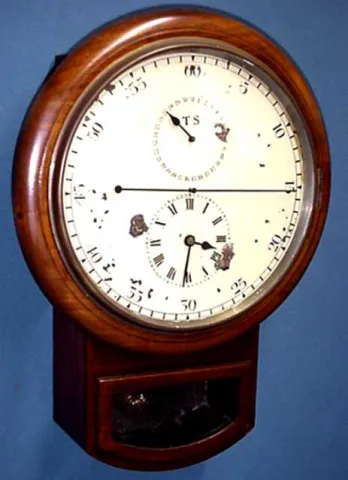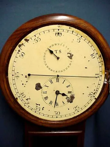 Antique Fusee Wall Clock with Calendar, Center Sweep Second Two Subsidiary Dials, CIRCA: 1860