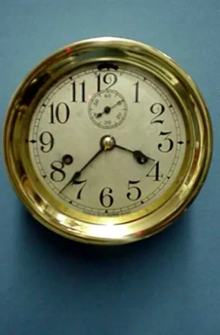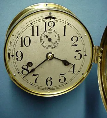 Seth Thomas brass ships bell clock, 7 inch diameter, Circa 1910.