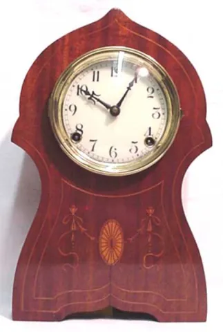 Sessions antique marquetry mantle clock, "The manchester" model, 8 day. Size is 13 3/4" x 8 3/4". The clock is a very difficult model to find verging ...