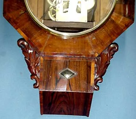 Clock, rare Chauncey Jerome, 8 day American fusee wall clock.CIRCA: 1823-1844 SIZE: 22" x 15" x 4 1/2" with a 10" dial MAKER: Chauncey Jerome, Bristol...