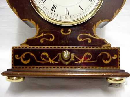 French antique inlaid 8 day Art Nouveau desk clock. CIRCA: 1900 SIZE: 8" by 6" by 3 1/2" with a 3 1/4" porcelain dial MAKER: The movement is marked w...