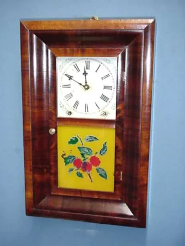 Miniature 8 day Ansonia Brass and Copper Co. Mahogany Case. Pristine condition. CIRCA: 1860 SIZE: 18 1/2" x 11 3/4" x 4" MAKER: Ansonia Brass and Cop...