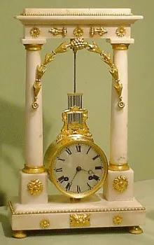 in white marble and ormolu case. The clock acts as its own pendulum by swinging on its knife edge suspension with a front to back motion. It has a pin...