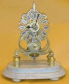 (as illustrated in Derek Roberts "British Skeleton Clocks" - page 133) with engraved inscription of the supplier "Spencer Chelmsford". British circa 1...
