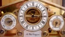 with day of the week dial to the left and 12 second bed. In miniture format and mahogany framed cover. 9"x8"x4". British...