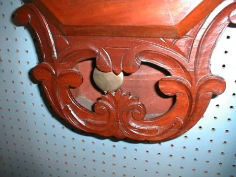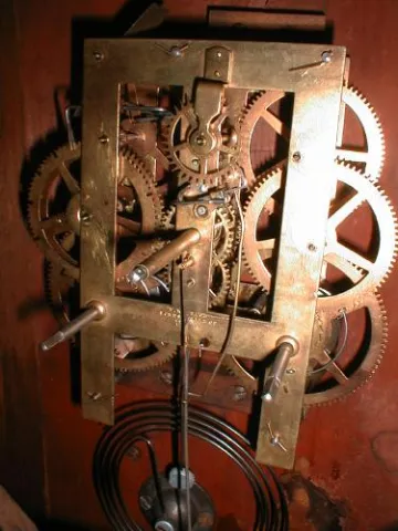 Overall, this is a VERY unusual piece. The eight-day brass movement has been cleaned and serviced recently and runs perfectly...striking the hours pro...
