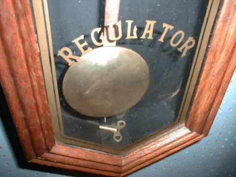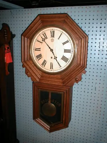 The Ingraham Clock Company produced this large wall regulator with octagonal top and long 'drop' bottom. These were used in school rooms, offices and ...