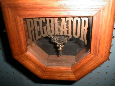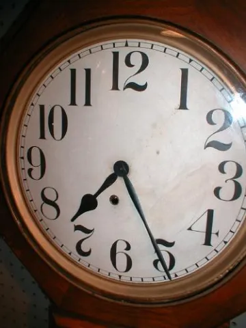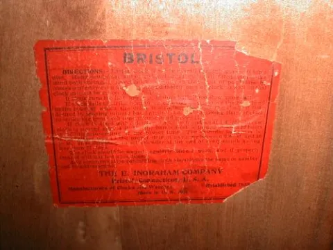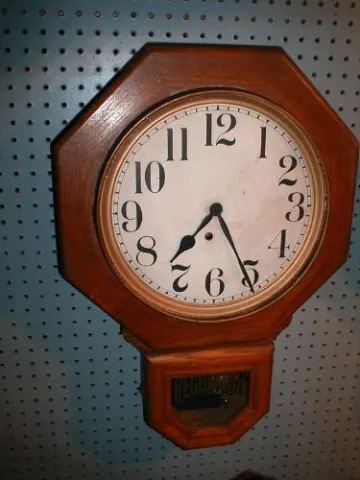 The E. Ingraham Clock Company named this "Schoolhouse" wall clock the "BRISTOL". The clean eight-day time-only movement runs well and keeps good time....