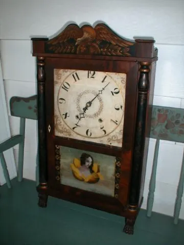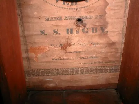 30 hour mantle clock by SS Higby of New Hartford, Connecticut with 30 hour wood works.
