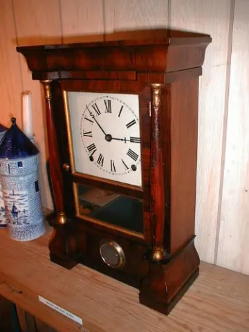 Miniature cornice and column 8-day clock by Seth Thomas Clock Company.