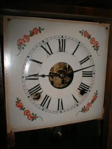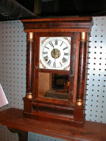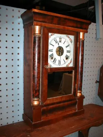 Eight-day miniature cornice and column clock.