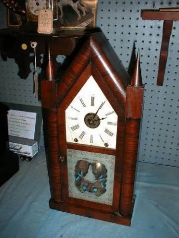 Brewster and Ingrahams Clock Company made especially attractive sharp gothic design (steeple) clocks. This attractive example of their work retains al...