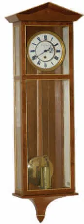 Miniature Vienna Regulator, 28 inches high, a very delicate but well constructed case using cherry wood, with pediment top and tapered tail, made by Fife Eason from Mississippi, in the 1990's.