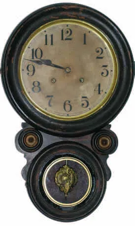 22 inches high case has the original finish with crazing, some finish is worn off to base wood. 10 inches paper dial is in good original condition; ha...