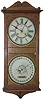 Oak case, original finish, 36 inches high. Upper and lower 9 inches dials original with minor chips, old hands, glass and pendulum. Hinged wood panel ...