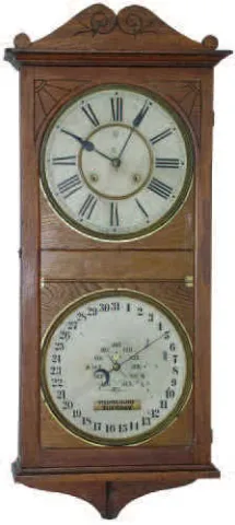 Charles W. Feishtinger, Fritztown, PA. wall double dial calendar clock, ca. 1890.
