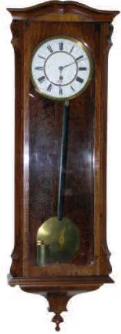Vienna Regulator, ca. 1890. Extra clean high grade case, approx. 42 inches high, possibly mahogany with burled backboard, good old glasses.