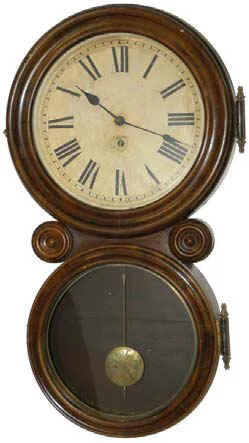 The 11.5 inches painted dial is beginning to lose a little paint, the hands are original, and the wood bezel is in good original condition. The focal ...