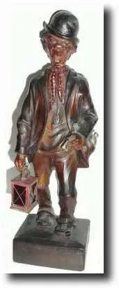 with small lantern in his right hand, and a large silver key in his left hand. This is an unusual model, the lantern wired with a bulb to flash interm...