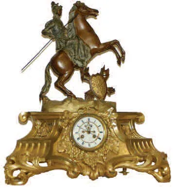 French Ormolu and Sculpture mantle clock was made in the mid-1800's and is stupendous in every detail. The height is an impressive 26 inches and the width is 24 inches.