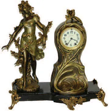 Seth Thomas and Sons, statue clock, "Inspiration", ca 1853- 1875. Made in the USA the movements were copied from the French, the castings were done in New York and covered with gilt.