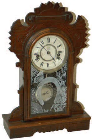 Waterbury Clock Company, miniature walnut parlor clock, the "Corona", ca 1890.