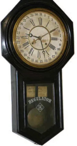 Ansonia Clock Company wall-calendar, "Regulator A Calendar", ca 1901. Black walnut case is original untouched condition.