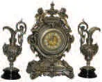 Ansonia Clock Company, metal case n mantle clock, "Lydia with Louis XVI Pitchers", ca 1894 and 1904. The set was cleaned and polished by Bruce Baziluk.