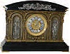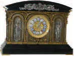 Ansonia Clock Company "Georgia", ca 1892. Enameled iron and spelter mantle clock refinished to the original colors by Bruce Baziluk, who specializes in restoring metal clocks.