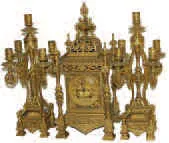 This is another large and rare metal clock that is 22.5 inches high, candelabras are 20 inches high. There must be a hundred castings in these three p...