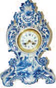French porcelain clock but case was made in Germany. Blue delft case, 16 inches high, 10.5 inches wide.
