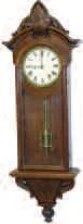 34 inches high walnut case with nicely carved crest and carved bottom. Clock refinished about thirty years ago; replaced 5 inches paper dial. Old extr...
