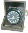 Molded phenolic material case mounted in hinged wood box, 10 inches high, 9.5 inches wide and 5.5 inches deep, radium painted hands and dial. The 6" "...