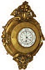 Beautiful carved cartel case, housing a clock and barometer that uses the same shaft.