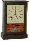 Grain painted soft wood cottage clock case is a tad under 12 inches high, original dial and glass, both clean and untouched. 30- hour movement is time...