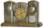 Advertised as "An Up-to-Date Clock for Up-to-Time People". The clock has an alarm system that is spring operated and batteries operate another bell. T...
