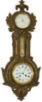 French bronzed metal wall clock with working thermometer and barometer, ca 1900, more or less.