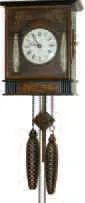 Closely resembles and similarly made like the Cuckoo clocks, using two cuckoo weights, cuckoo type pendulum, cuckoo type back door with coil gong atta...