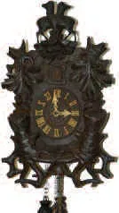 German 30 hour cuckoo in a different looking carved case, 19" high.