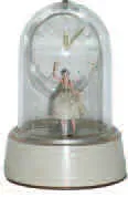 1-day movement winds from back; alarm activates music box in base of clock. As music plays ballerina rotates. Good working condition....