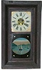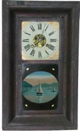 26 inches high case, original finish, some pieces of veneer missing on front edge, heavy crazing, old glasses, lower reverse painting old and in good ...