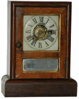 Seth Thomas "Cottage Extra", ca 1865. Great little 9.5 inches high mahogany veneer case, gilt around the glasses mostly still intact.