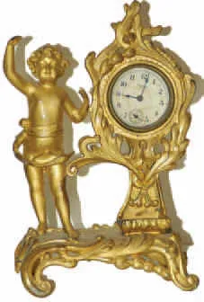 New Haven Clock Co. metal novelty clock, "Akron", ca1913.