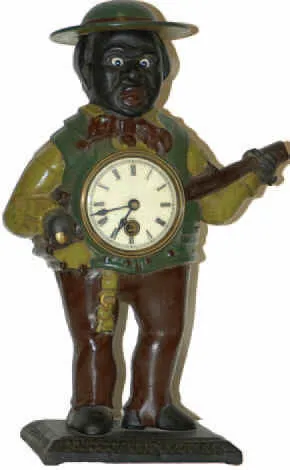 It runs and the eyes blink. It is unsigned, the iron case stands 14.5 inches high. Colorfully painted The original models were made in Connecticut aro...