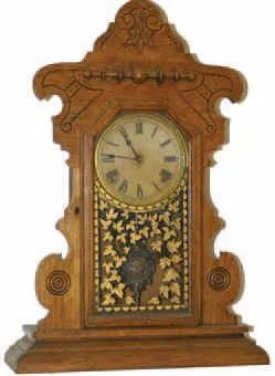 So stated on the complete backboard label, now covered with plastic for protection. 23 inches golden oak case, incised (not pressed), with applied dec...