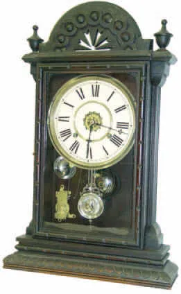 Waterbury Clock Co., shelf "Albany", ca 1891. 24 inches high walnut case, original finish.